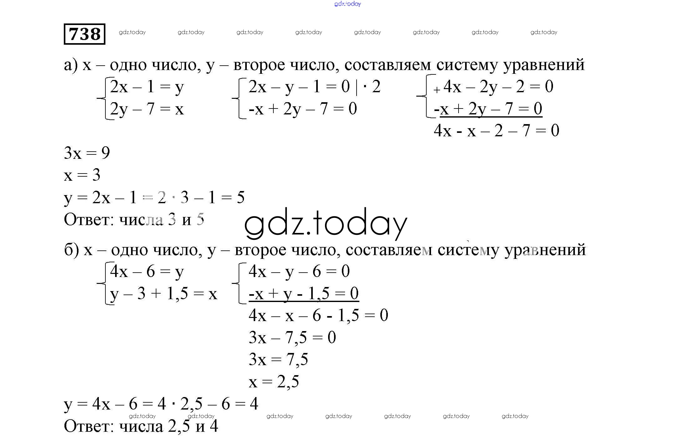 Ответы к Решение к eпражнениям 738 Учебнику по Алгебре для 7 класса Никольский, Потапов Просвещение МГУ - школе 2013