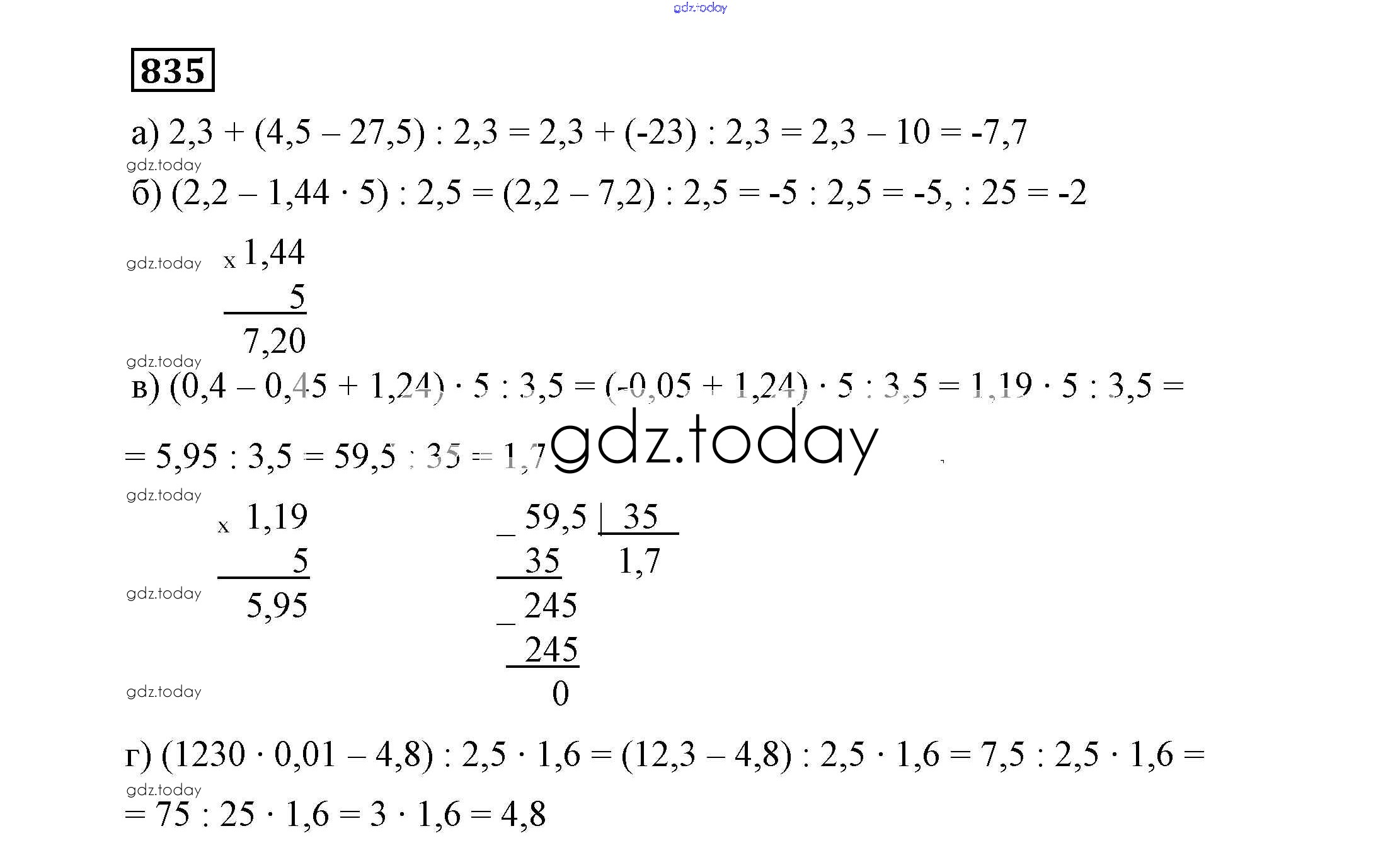 На страницах сайта gdz.today вы найдете учебный и вспомогательный материал, направленный на улучшения знаний школьной программы. ГДЗ - онлайн мир знаний Решение к eпражнениям 835 Учебнику по Алгебре для 7 класса Никольский, Потапов Просвещение МГУ - школе 2013