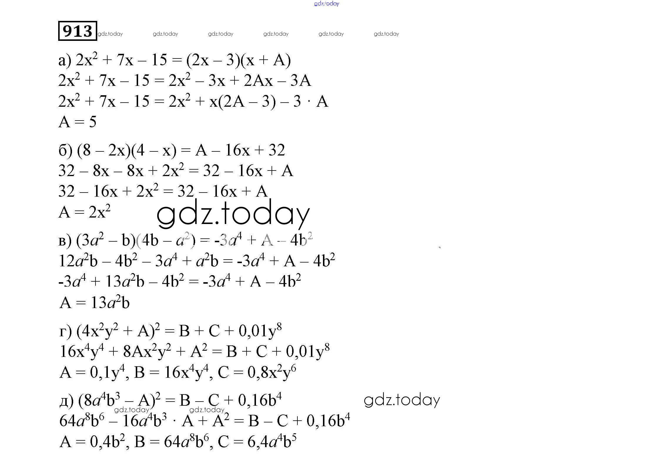 На страницах сайта gdz.today вы найдете учебный и вспомогательный материал, направленный на улучшения знаний школьной программы. ГДЗ - онлайн мир знаний Решение к eпражнениям 913 Учебнику по Алгебре для 7 класса Никольский, Потапов Просвещение МГУ - школе 2013