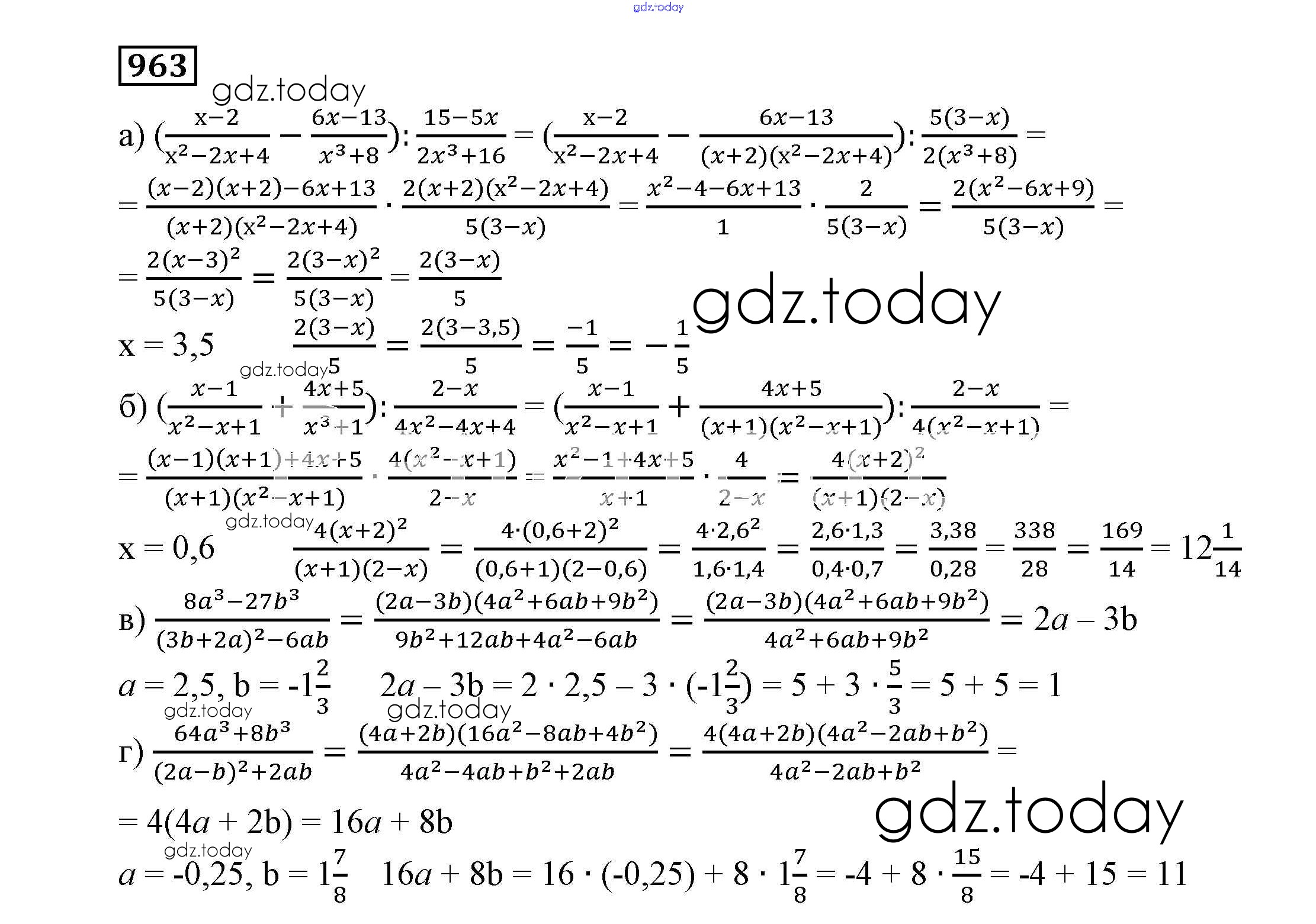 На страницах сайта gdz.today вы найдете учебный и вспомогательный материал, направленный на улучшения знаний школьной программы. ГДЗ - онлайн мир знаний Решение к eпражнениям 963 Учебнику по Алгебре для 7 класса Никольский, Потапов Просвещение МГУ - школе 2013