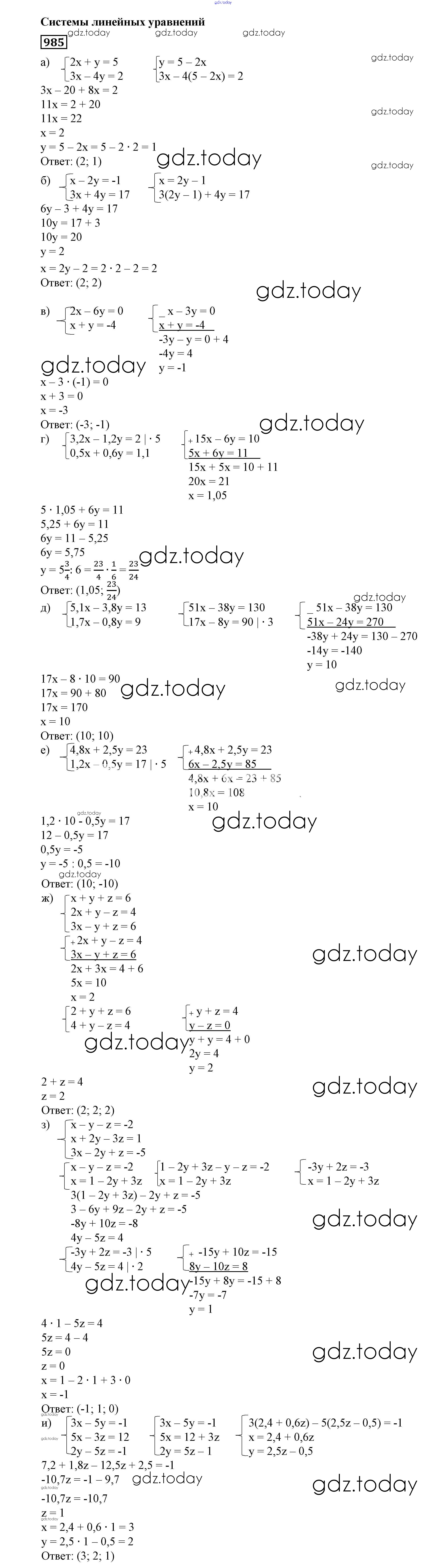 На страницах сайта gdz.today вы найдете учебный и вспомогательный материал, направленный на улучшения знаний школьной программы. ГДЗ - онлайн мир знаний Решение к eпражнениям 985 Учебнику по Алгебре для 7 класса Никольский, Потапов Просвещение МГУ - школе 2013