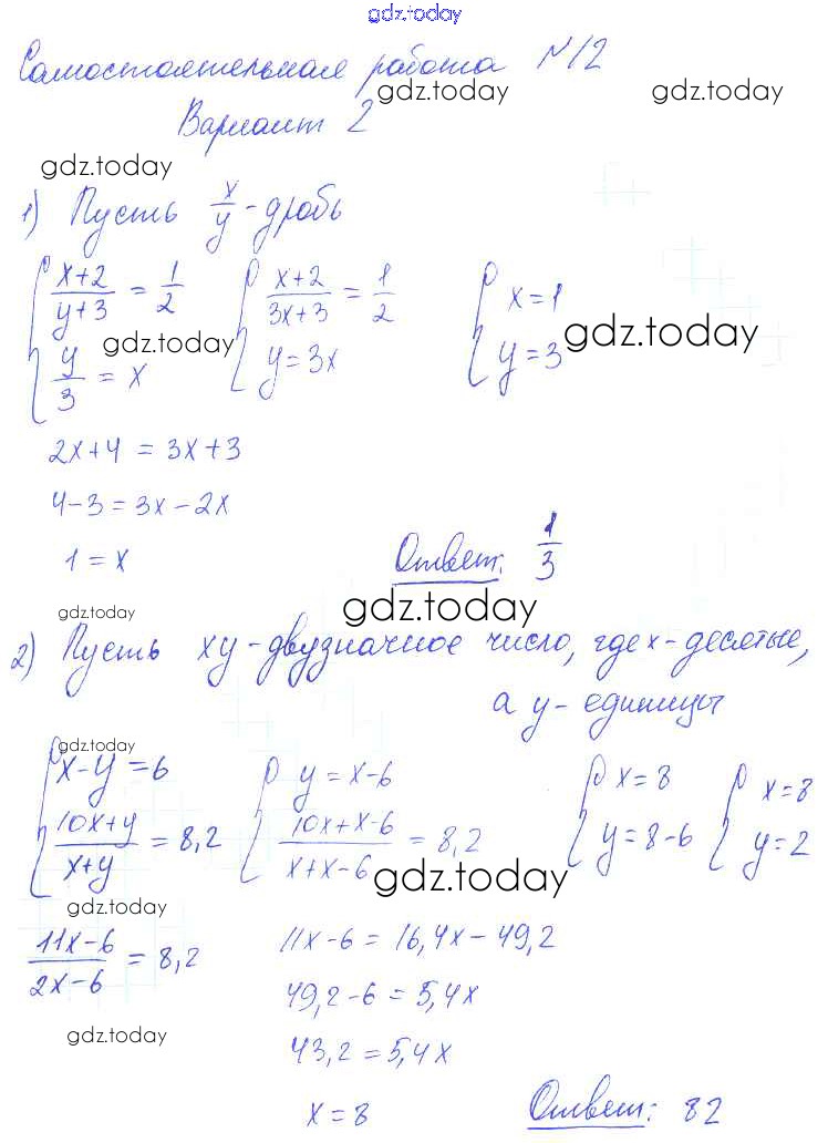 Ответы к СР-12 Решение к самостоятельным работам. Варианты 2 Контрольным и самостоятельным работам по Алгебре для 7 класса Попов Экзамен УМК 2017