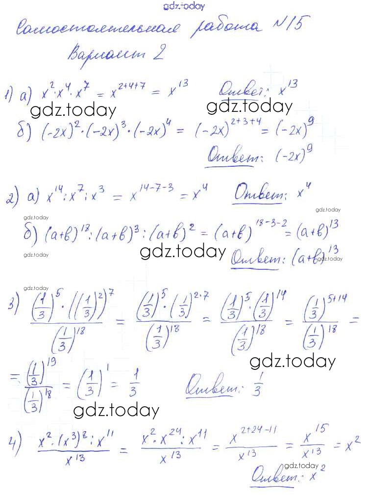 Ответы к СР-15 Решение к самостоятельным работам. Варианты 2 Контрольным и самостоятельным работам по Алгебре для 7 класса Попов Экзамен УМК 2017