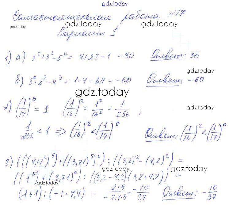 На страницах сайта gdz.today вы найдете учебный и вспомогательный материал, направленный на улучшения знаний школьной программы. ГДЗ - онлайн мир знаний СР-17 Решение к самостоятельным работам. Варианты 1 Контрольным и самостоятельным работам по Алгебре для 7 класса Попов Экзамен УМК 2017