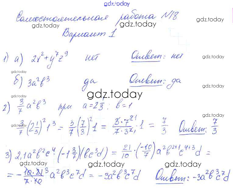 На страницах сайта gdz.today вы найдете учебный и вспомогательный материал, направленный на улучшения знаний школьной программы. ГДЗ - онлайн мир знаний СР-18 Решение к самостоятельным работам. Варианты 1 Контрольным и самостоятельным работам по Алгебре для 7 класса Попов Экзамен УМК 2017