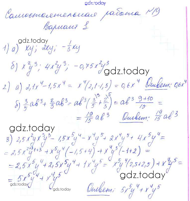 Ответы к СР-19 Решение к самостоятельным работам. Варианты 1 Контрольным и самостоятельным работам по Алгебре для 7 класса Попов Экзамен УМК 2017