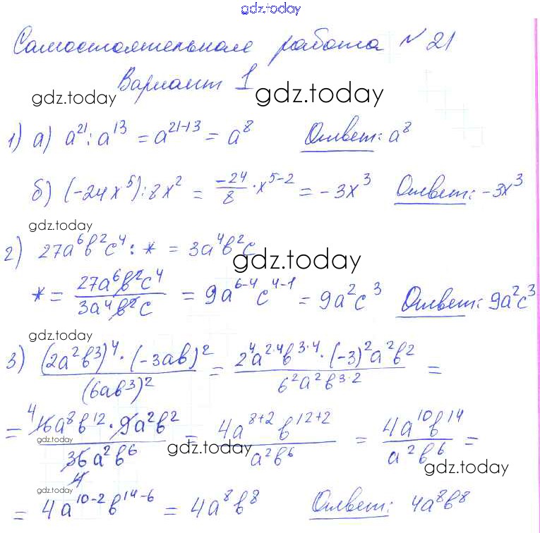 Ответы к СР-21 Решение к самостоятельным работам. Варианты 1 Контрольным и самостоятельным работам по Алгебре для 7 класса Попов Экзамен УМК 2017
