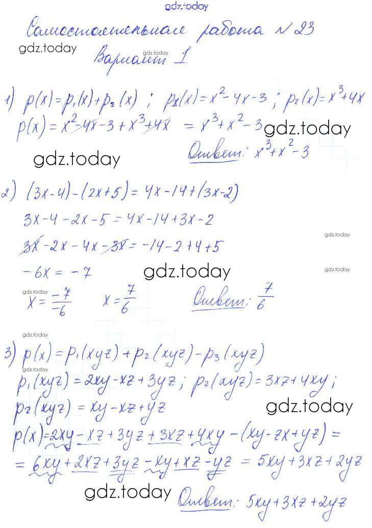 Ответы к СР-23 Решение к самостоятельным работам. Варианты 1 Контрольным и самостоятельным работам по Алгебре для 7 класса Попов Экзамен УМК 2017