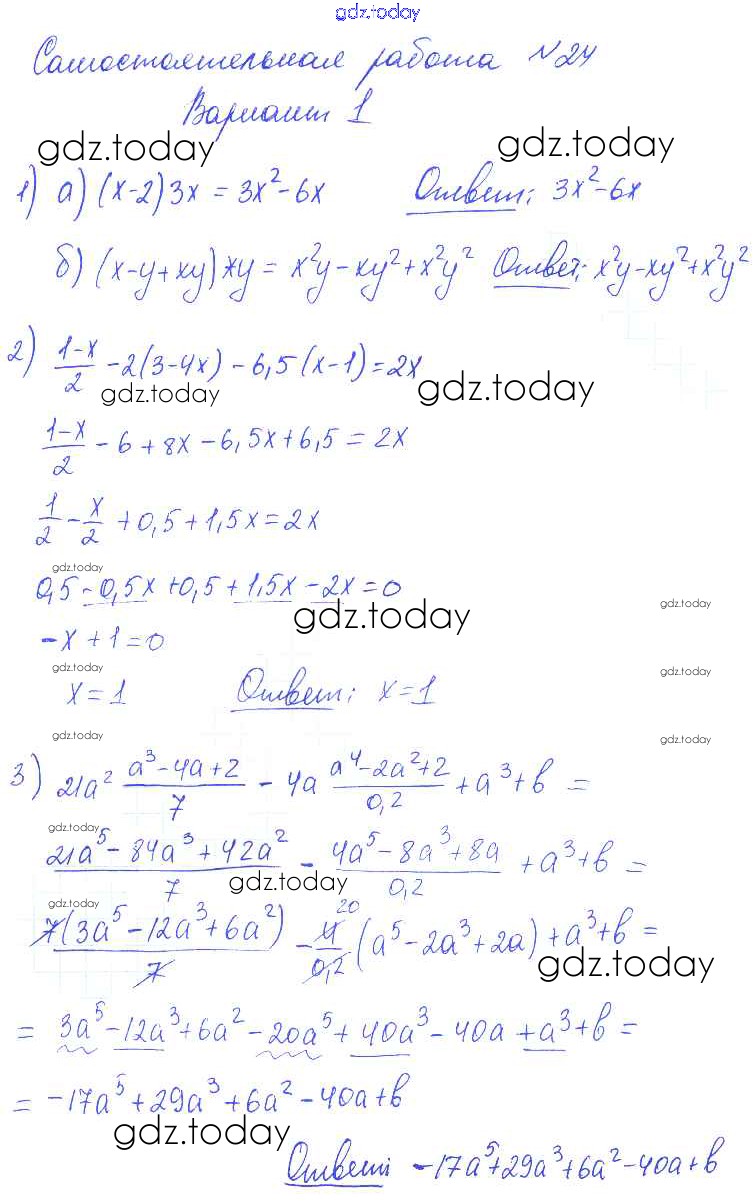 Ответы к СР-24 Решение к самостоятельным работам. Варианты 1 Контрольным и самостоятельным работам по Алгебре для 7 класса Попов Экзамен УМК 2017