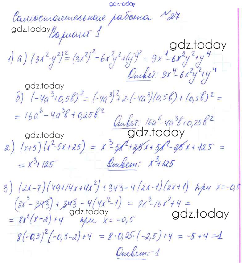 На страницах сайта gdz.today вы найдете учебный и вспомогательный материал, направленный на улучшения знаний школьной программы. ГДЗ - онлайн мир знаний СР-27 Решение к самостоятельным работам. Варианты 1 Контрольным и самостоятельным работам по Алгебре для 7 класса Попов Экзамен УМК 2017