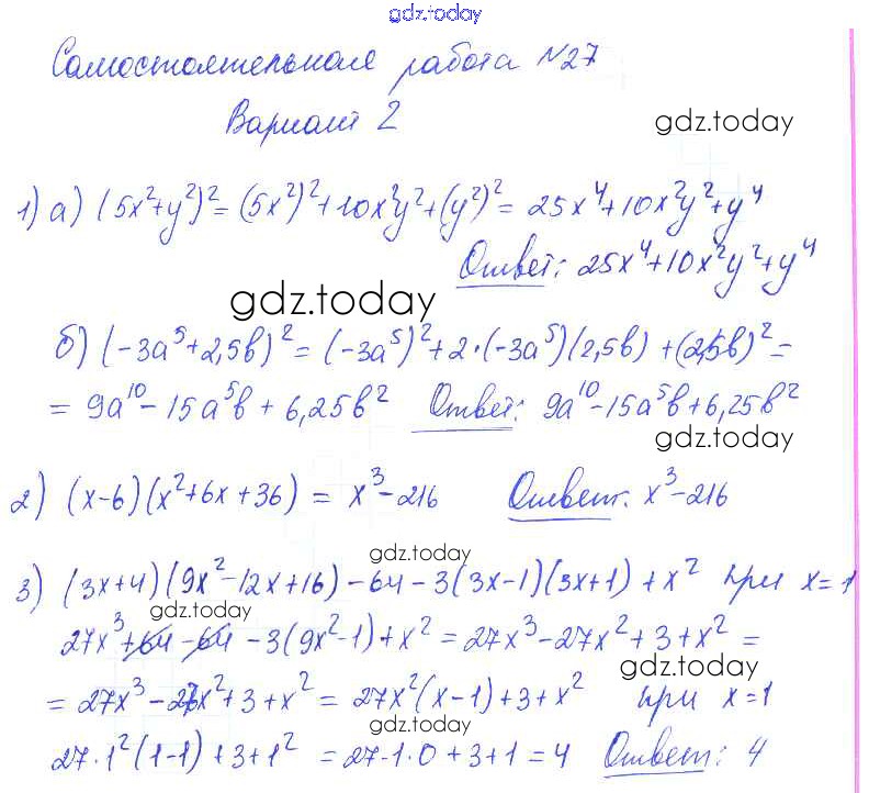 На страницах сайта gdz.today вы найдете учебный и вспомогательный материал, направленный на улучшения знаний школьной программы. ГДЗ - онлайн мир знаний СР-27 Решение к самостоятельным работам. Варианты 2 Контрольным и самостоятельным работам по Алгебре для 7 класса Попов Экзамен УМК 2017