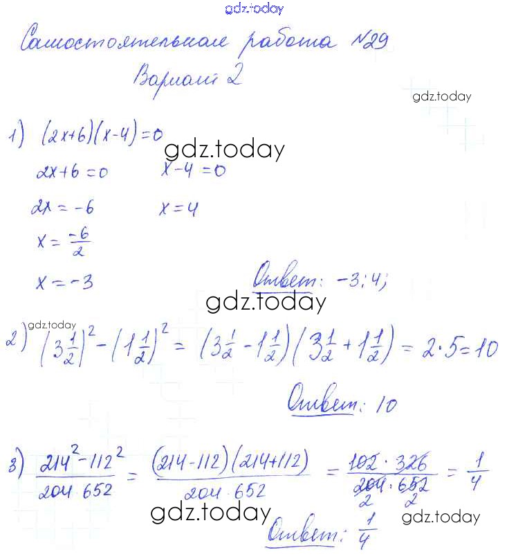 Ответы к СР-29 Решение к самостоятельным работам. Варианты 2 Контрольным и самостоятельным работам по Алгебре для 7 класса Попов Экзамен УМК 2017