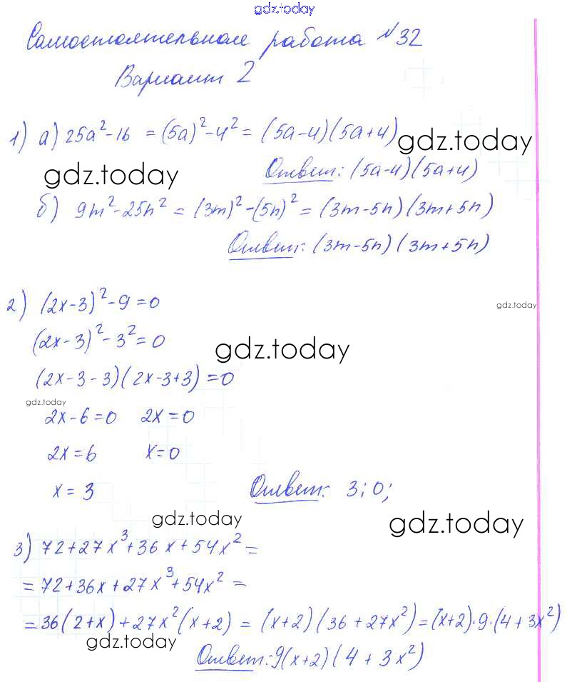На страницах сайта gdz.today вы найдете учебный и вспомогательный материал, направленный на улучшения знаний школьной программы. ГДЗ - онлайн мир знаний СР-32 Решение к самостоятельным работам. Варианты 2 Контрольным и самостоятельным работам по Алгебре для 7 класса Попов Экзамен УМК 2017