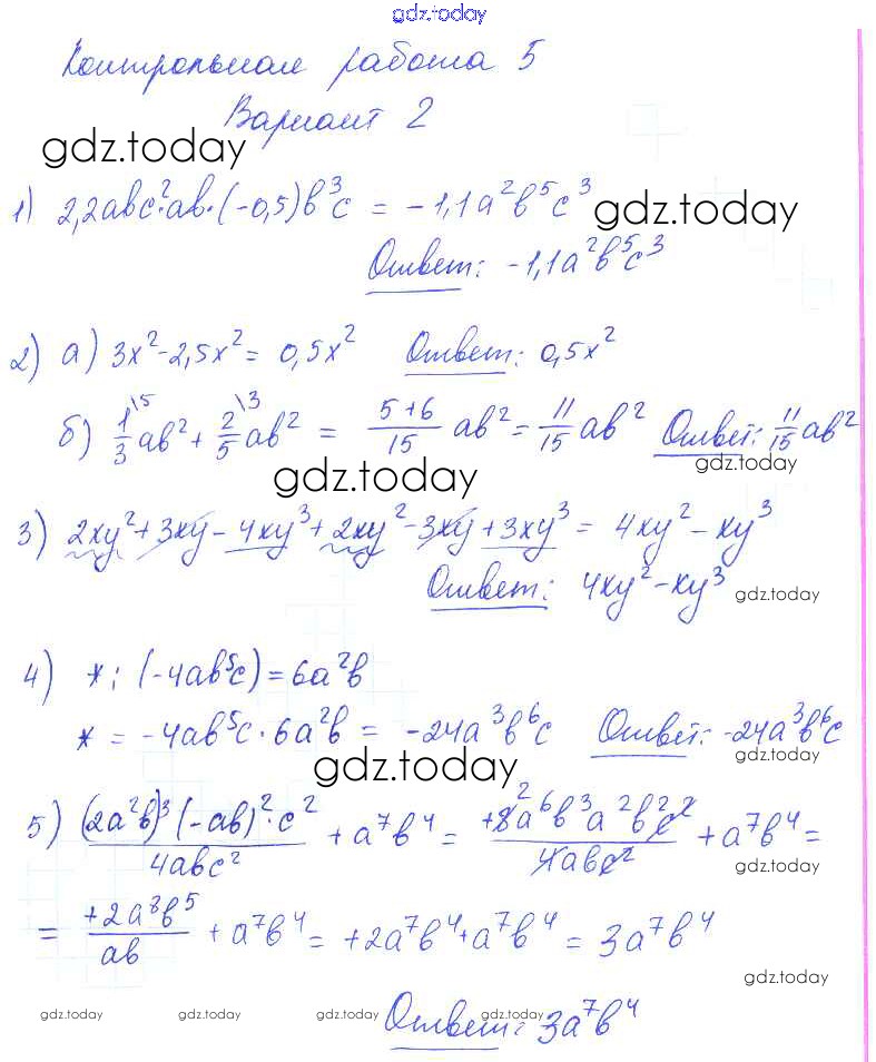 Ответы к КР-5 Решение к контрольным работам. Варианты 2 Контрольным и самостоятельным работам по Алгебре для 7 класса Попов Экзамен УМК 2017