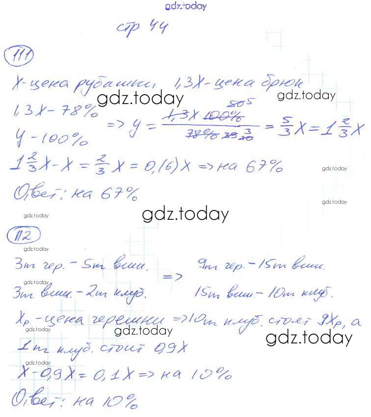 Ответы к Решение к части 1. Страницы 44 Рабочей тетради по Алгебре для 7 класса Потапов, Шевкин Просвещение МГУ - школе 2018