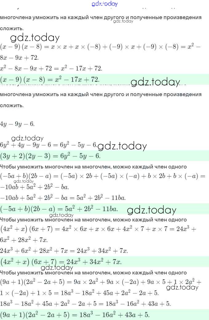 На страницах сайта gdz.today вы найдете учебный и вспомогательный материал, направленный на улучшения знаний школьной программы. ГДЗ - онлайн мир знаний § 11. Умножение многочлена на многочлен. Страница 56-63 Решение. Часть 1 2 Рабочей тетради по Алгебре для 7 класса Мерзляк, Полонский Вентана-граф Алгоритм успеха 2018