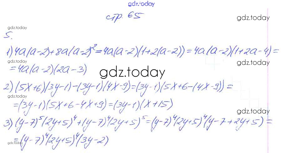 На страницах сайта gdz.today вы найдете учебный и вспомогательный материал, направленный на улучшения знаний школьной программы. ГДЗ - онлайн мир знаний § 12. Разложение многочлена на множители. Вынесение общего множителя за скобки. Страница 63-69 Решение. Часть 1 5 Рабочей тетради по Алгебре для 7 класса Мерзляк, Полонский Вентана-граф Алгоритм успеха 2018