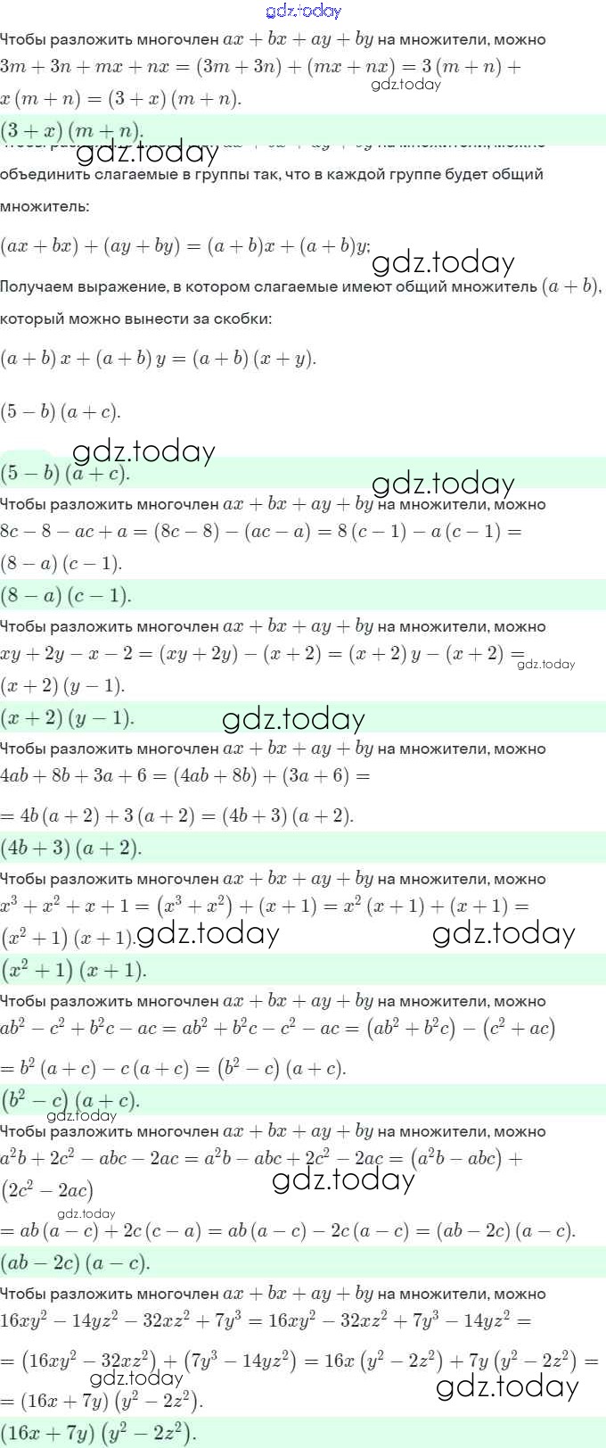 На страницах сайта gdz.today вы найдете учебный и вспомогательный материал, направленный на улучшения знаний школьной программы. ГДЗ - онлайн мир знаний § 13. Разложение многочленов на множители. Метод группировки. Страница 69-71 Решение. Часть 1 1 Рабочей тетради по Алгебре для 7 класса Мерзляк, Полонский Вентана-граф Алгоритм успеха 2018