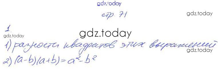 Ответы к § 14. Произведение разности и суммы двух выражений. Страница 71-74 Решение. Часть 1 1 Рабочей тетради по Алгебре для 7 класса Мерзляк, Полонский Вентана-граф Алгоритм успеха 2018