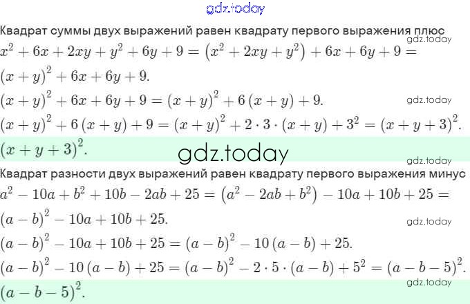 На страницах сайта gdz.today вы найдете учебный и вспомогательный материал, направленный на улучшения знаний школьной программы. ГДЗ - онлайн мир знаний § 17. Преобразование многочлена в квадрат суммы или разности двух выражений. Страница 91-100 Решение. Часть 1 12 Рабочей тетради по Алгебре для 7 класса Мерзляк, Полонский Вентана-граф Алгоритм успеха 2018