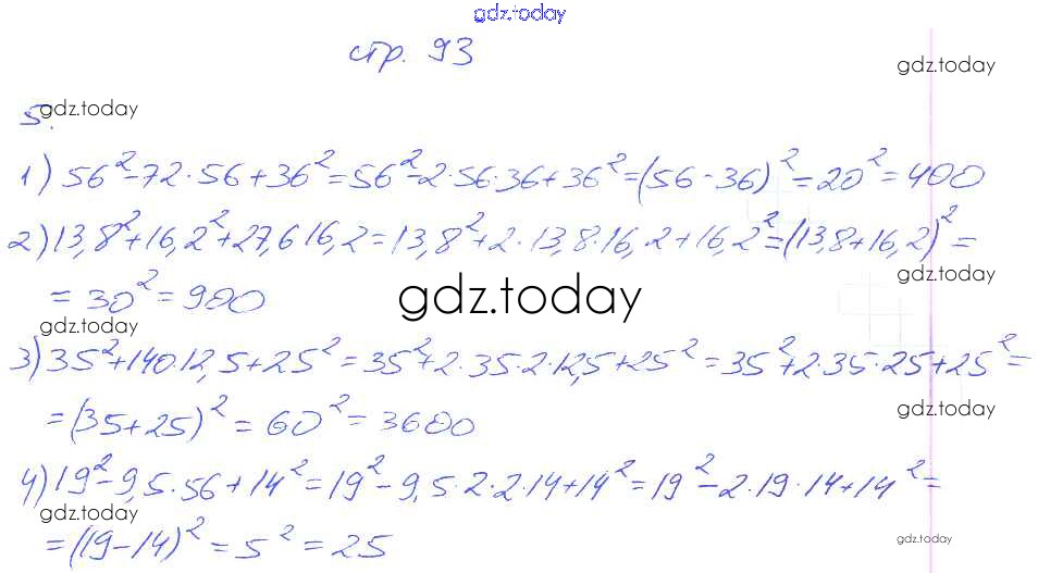 На страницах сайта gdz.today вы найдете учебный и вспомогательный материал, направленный на улучшения знаний школьной программы. ГДЗ - онлайн мир знаний § 17. Преобразование многочлена в квадрат суммы или разности двух выражений. Страница 91-100 Решение. Часть 1 5 Рабочей тетради по Алгебре для 7 класса Мерзляк, Полонский Вентана-граф Алгоритм успеха 2018