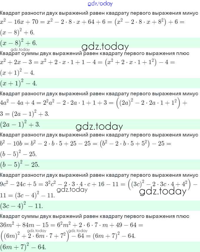 На страницах сайта gdz.today вы найдете учебный и вспомогательный материал, направленный на улучшения знаний школьной программы. ГДЗ - онлайн мир знаний § 17. Преобразование многочлена в квадрат суммы или разности двух выражений. Страница 91-100 Решение. Часть 1 8 Рабочей тетради по Алгебре для 7 класса Мерзляк, Полонский Вентана-граф Алгоритм успеха 2018