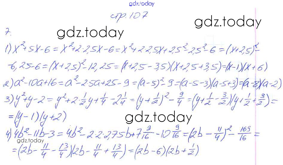 На страницах сайта gdz.today вы найдете учебный и вспомогательный материал, направленный на улучшения знаний школьной программы. ГДЗ - онлайн мир знаний § 19. Применение различных способов разложения многочлена на множители. Страница 104-110 Решение. Часть 1 7 Рабочей тетради по Алгебре для 7 класса Мерзляк, Полонский Вентана-граф Алгоритм успеха 2018