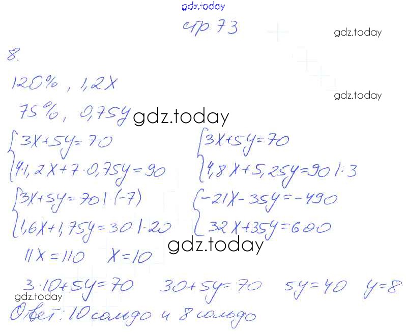 Ответы к § 29. Решение задач с помощью систем линейных уравнений. Страница 67-78 Решение. Часть 2 8 Рабочей тетради по Алгебре для 7 класса Мерзляк, Полонский Вентана-граф Алгоритм успеха 2018