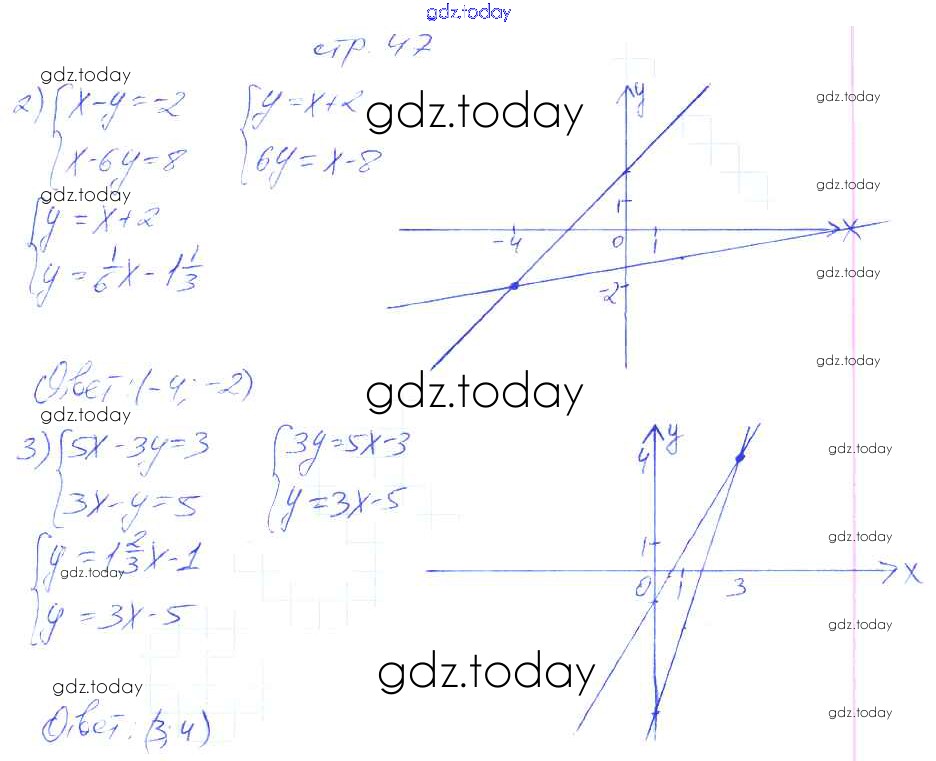 На страницах сайта gdz.today вы найдете учебный и вспомогательный материал, направленный на улучшения знаний школьной программы. ГДЗ - онлайн мир знаний § 26. Системы уравнений с двумя переменными. Графический метод решения систему двух линейных уравнений методом подстановки. Страница 44-51 Решение. Часть 2 4 Рабочей тетради по Алгебре для 7 класса Мерзляк, Полонский Вентана-граф Алгоритм успеха 2018