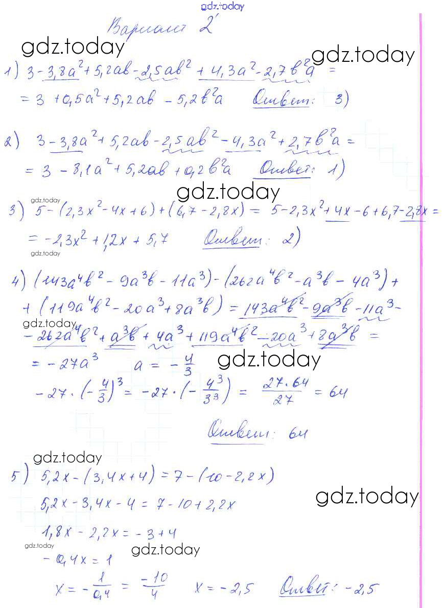 Ответы к СР-18 Решение к cамостоятельным работам вариант 2 Самостоятельным и контрольным работам по Алгебре для 7 класса Глазков, Гаиашвили Экзамен УМК 2019