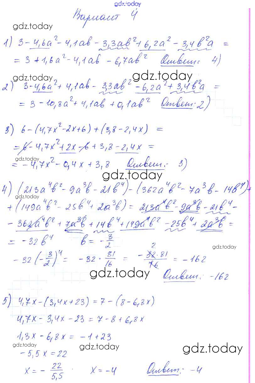 Ответы к СР-18 Решение к cамостоятельным работам вариант 4 Самостоятельным и контрольным работам по Алгебре для 7 класса Глазков, Гаиашвили Экзамен УМК 2019