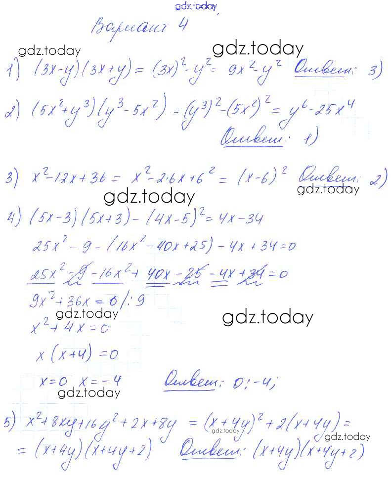 На страницах сайта gdz.today вы найдете учебный и вспомогательный материал, направленный на улучшения знаний школьной программы. ГДЗ - онлайн мир знаний СР-24 Решение к cамостоятельным работам вариант 4 Самостоятельным и контрольным работам по Алгебре для 7 класса Глазков, Гаиашвили Экзамен УМК 2019