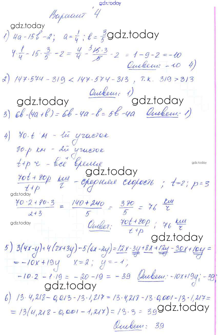 Ответы к КР-1 (варианты) Решение к контрольным работам вариант 4 Самостоятельным и контрольным работам по Алгебре для 7 класса Глазков, Гаиашвили Экзамен УМК 2019