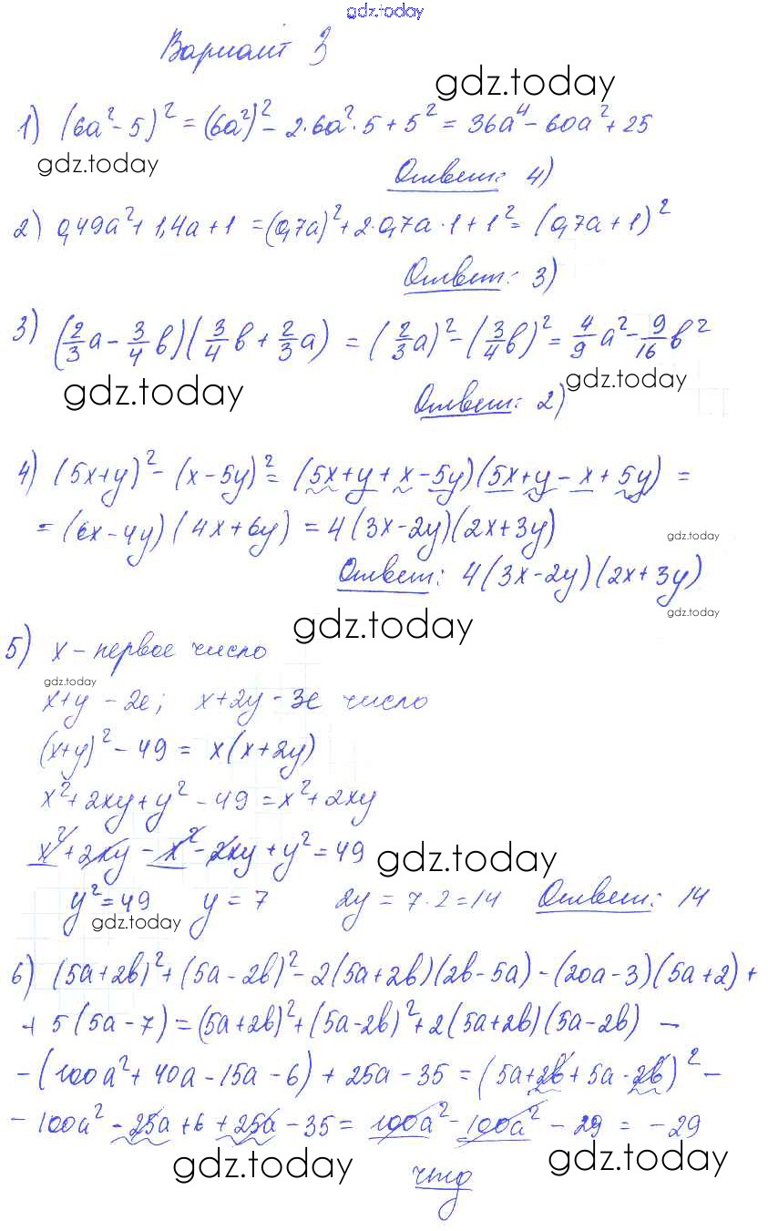 На страницах сайта gdz.today вы найдете учебный и вспомогательный материал, направленный на улучшения знаний школьной программы. ГДЗ - онлайн мир знаний КР-7 Решение к контрольным работам вариант 3 Самостоятельным и контрольным работам по Алгебре для 7 класса Глазков, Гаиашвили Экзамен УМК 2019