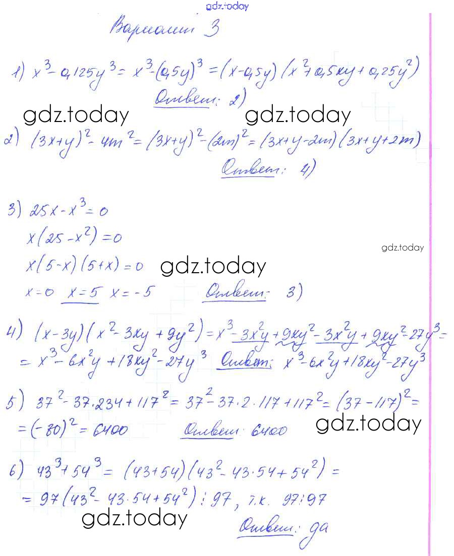 Ответы к КР-8 Решение к контрольным работам вариант 3 Самостоятельным и контрольным работам по Алгебре для 7 класса Глазков, Гаиашвили Экзамен УМК 2019