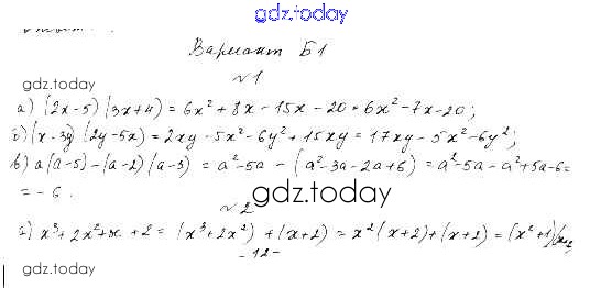 Ответы к КР-5. Умножение многочленов. Способ группировки Контрольные работы вариант Б-1 Самостоятельным и контрольным работам по Алгебре для 7 класса Ершова, Голобородько Илекса 2015