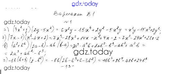 Ответы к КР-5. Умножение многочленов. Способ группировки Контрольные работы вариант В-1 Самостоятельным и контрольным работам по Алгебре для 7 класса Ершова, Голобородько Илекса 2015