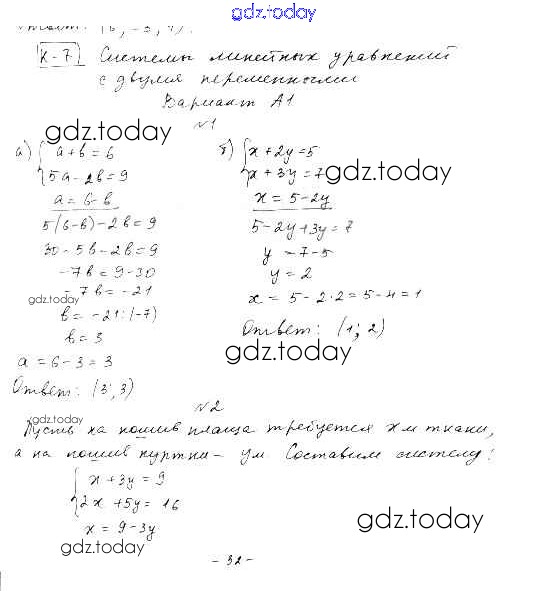 На страницах сайта gdz.today вы найдете учебный и вспомогательный материал, направленный на улучшения знаний школьной программы. ГДЗ - онлайн мир знаний КР-7. Системы линейных уравнений с двумя переменными Контрольные работы вариант А-1 Самостоятельным и контрольным работам по Алгебре для 7 класса Ершова, Голобородько Илекса 2015