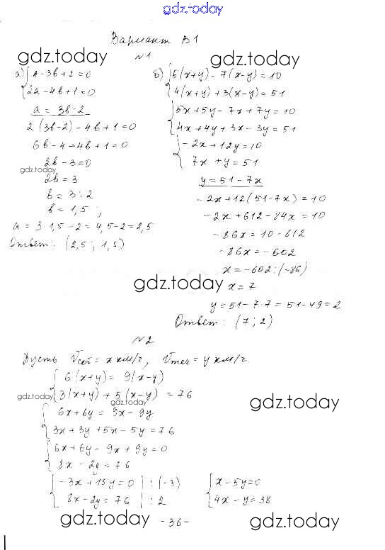 Ответы к КР-7. Системы линейных уравнений с двумя переменными Контрольные работы вариант В-1 Самостоятельным и контрольным работам по Алгебре для 7 класса Ершова, Голобородько Илекса 2015