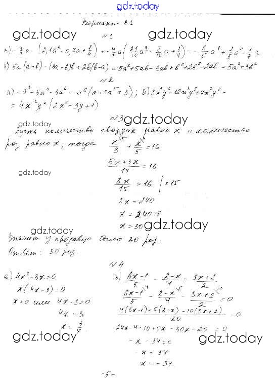 Ответы к СР-11. Умножение многочлена на одночлен. Вынесение общего множителя за скобки Самостоятельные работы вариант В-1 Самостоятельным и контрольным работам по Алгебре для 7 класса Ершова, Голобородько Илекса 2015