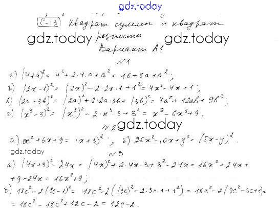 На страницах сайта gdz.today вы найдете учебный и вспомогательный материал, направленный на улучшения знаний школьной программы. ГДЗ - онлайн мир знаний СР-13. Квадрат суммы и квадрат разности Самостоятельные работы вариант А-1 Самостоятельным и контрольным работам по Алгебре для 7 класса Ершова, Голобородько Илекса 2015