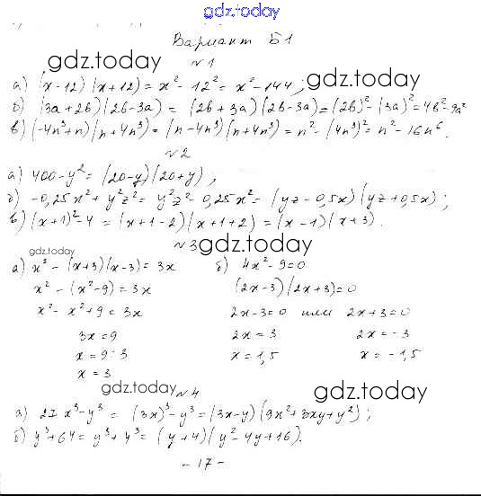 На страницах сайта gdz.today вы найдете учебный и вспомогательный материал, направленный на улучшения знаний школьной программы. ГДЗ - онлайн мир знаний СР-14. Разность квадратов. Сумма и разность кубов Самостоятельные работы вариант Б-1 Самостоятельным и контрольным работам по Алгебре для 7 класса Ершова, Голобородько Илекса 2015