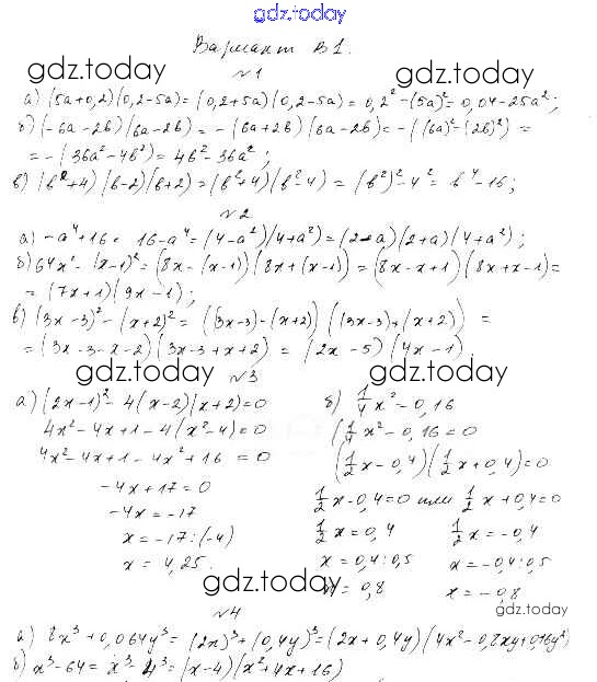 На страницах сайта gdz.today вы найдете учебный и вспомогательный материал, направленный на улучшения знаний школьной программы. ГДЗ - онлайн мир знаний СР-14. Разность квадратов. Сумма и разность кубов Самостоятельные работы вариант В-1 Самостоятельным и контрольным работам по Алгебре для 7 класса Ершова, Голобородько Илекса 2015