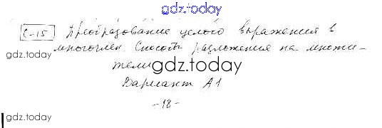 На страницах сайта gdz.today вы найдете учебный и вспомогательный материал, направленный на улучшения знаний школьной программы. ГДЗ - онлайн мир знаний СР-15. Преобразование целого выражения в многочлен Самостоятельные работы вариант А-1 Самостоятельным и контрольным работам по Алгебре для 7 класса Ершова, Голобородько Илекса 2015