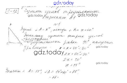 На страницах сайта gdz.today вы найдете учебный и вспомогательный материал, направленный на улучшения знаний школьной программы. ГДЗ - онлайн мир знаний СР-12. Сумма углов треугольника Самостоятельные работы вариант А-1 Самостоятельным и контрольным работам по Алгебре для 7 класса Ершова, Голобородько Илекса 2015
