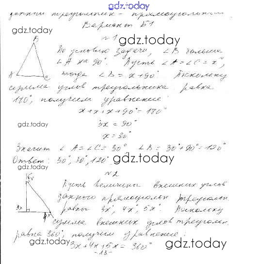 На страницах сайта gdz.today вы найдете учебный и вспомогательный материал, направленный на улучшения знаний школьной программы. ГДЗ - онлайн мир знаний СР-12. Сумма углов треугольника Самостоятельные работы вариант Б-1 Самостоятельным и контрольным работам по Алгебре для 7 класса Ершова, Голобородько Илекса 2015