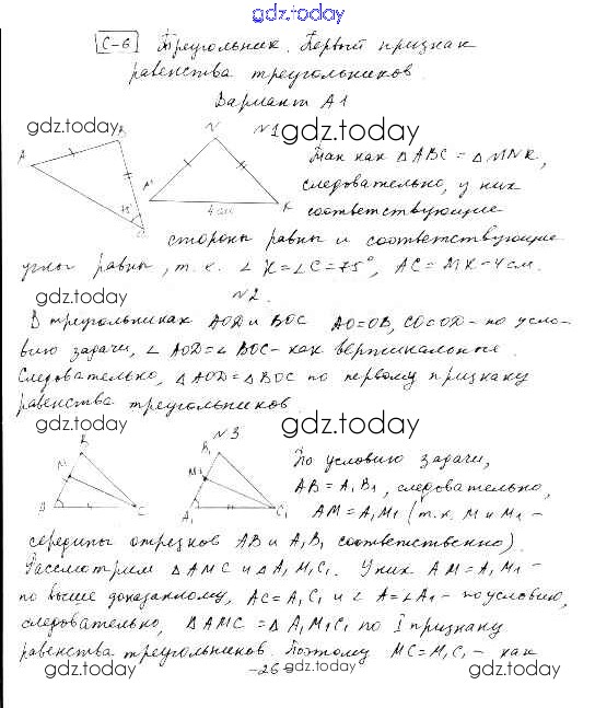 На страницах сайта gdz.today вы найдете учебный и вспомогательный материал, направленный на улучшения знаний школьной программы. ГДЗ - онлайн мир знаний СР-6. Треугольник Самостоятельные работы вариант А-1 Самостоятельным и контрольным работам по Алгебре для 7 класса Ершова, Голобородько Илекса 2015