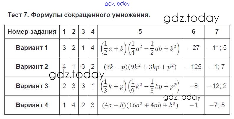 На страницах сайта gdz.today вы найдете учебный и вспомогательный материал, направленный на улучшения знаний школьной программы. ГДЗ - онлайн мир знаний Решение к тестам 7 Тематическим тестам по Алгебре для 7 класса Дудницын, Кронгауз Просвещение 2011