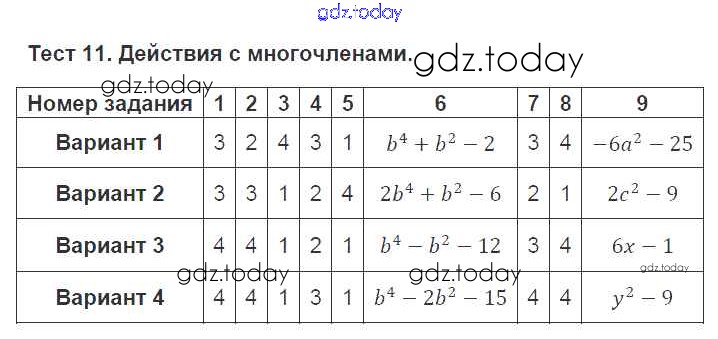 На страницах сайта gdz.today вы найдете учебный и вспомогательный материал, направленный на улучшения знаний школьной программы. ГДЗ - онлайн мир знаний Решение к тестам 11 Тематическим тестам по Алгебре для 7 класса Кузнецова, Минаева Просвещение 2017