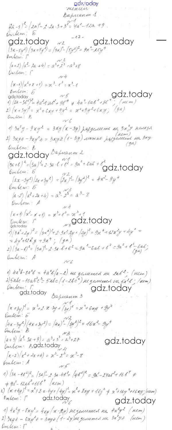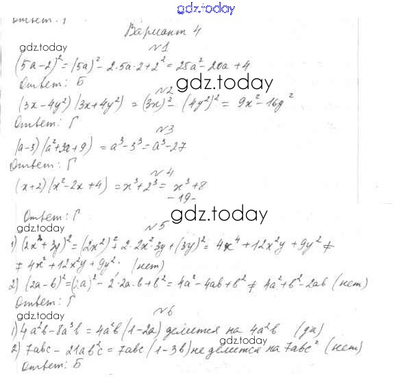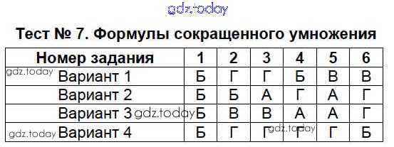 На страницах сайта gdz.today вы найдете учебный и вспомогательный материал, направленный на улучшения знаний школьной программы. ГДЗ - онлайн мир знаний 7 класс. Решение к тестам Тест 7 Тестам по Алгебре для 7-9 класса Мордкович, Тульчинкая Базовый уровень Мнемозина 2013
